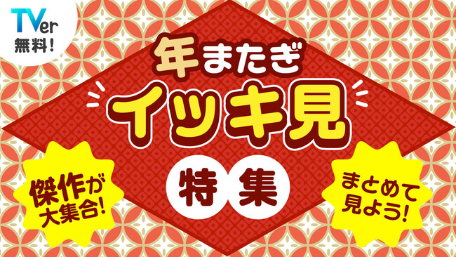 民放公式テレビ配信サービス「TVer (ティーバー)」では、年末年始にたっぷりテレビコンテンツを楽しんでいただくため、2022年12月26日(月)から2023年1月9日(月/祝)の間『年またぎイッキ見特集』を実施します。
