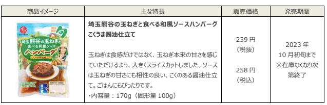 無添加調理※1 で商品作りを進めている石井食品株式会社(本社:千葉県船橋市、代表取締役社長執行役員:石井智康、以下、「石井食品」)は、埼玉・群馬を中心とした関東で「安く、おいしく」を提供する地域密着型スーパーマーケット株式会社ベルク(本社:埼玉県鶴ヶ島市、代表取締役社長:原島一誠、以下「ベルク」)とともに、2021 年より、生産者支援プロジェクトを立ち上げ、福祉・農業の事業を軸にソーシャルファームを推し進める埼玉福興の生産者のみなさまとともに、今年で商品開発第 3 弾となる、『埼玉熊谷の玉ねぎと食べる和風ソースハンバーグ こくうま醤油仕立て』を、期間限定で 10 月初旬※2 まで発売をいたします。