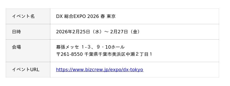 「DX 総合EXPO 2026 春 東京」に出展します