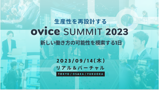 oVice株式会社(本社:石川県七尾市、代表取締役CEO:ジョン・セーヒョン)は、“生産性を再設計する”をテーマに、それぞれの働き方が生産性に与える影響を理解し、新たな働き方の可能性を模索するイベント「ovice Summit 2023」をオンラインとリアルのハイブリッド形式で2023年9月14日(木)に開催します。