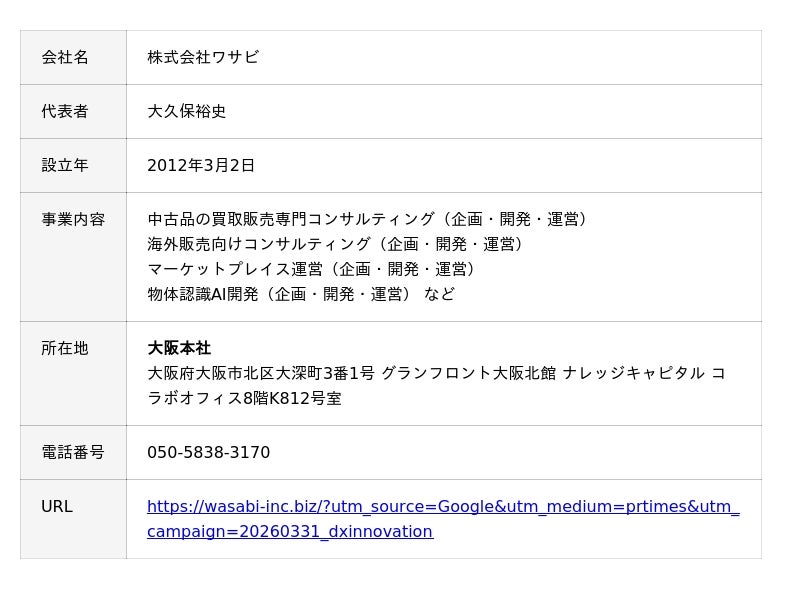 株式会社ワサビ(本社:大阪府大阪市、代表取締役:大久保裕史、以下「ワサビ」)は、この度一般社団法人 日本オムニチャネル協会主催「DXイノベーション大賞」にて、支援会社部門 最優秀賞を受賞しました。