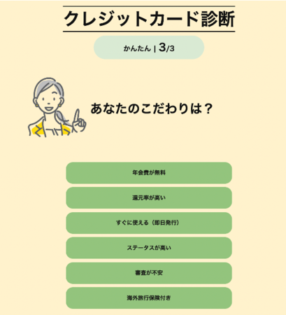 『たったの10秒』自分に合ったクレジットカードが見つかる!「クレジットカード診断」機能を公開