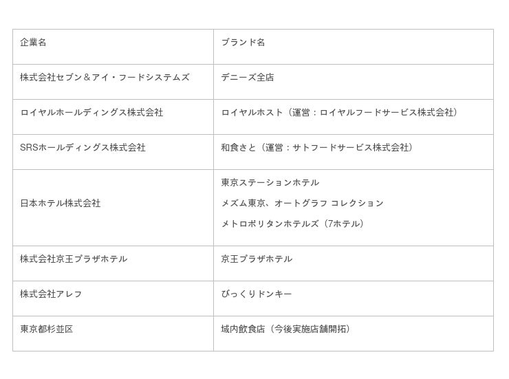 具体的には、6社が運営する各店舗で、お客様が食べ切れない料理のお持ち帰りをご希望された場合、安全にお召し上がりいただくための注意喚起チラシと容器をお渡しし、ご自身の責任においてお持ち帰りいただくことで、「食べ残したものは自分の責任で持って帰る文化」の普及と啓発を図るものです。