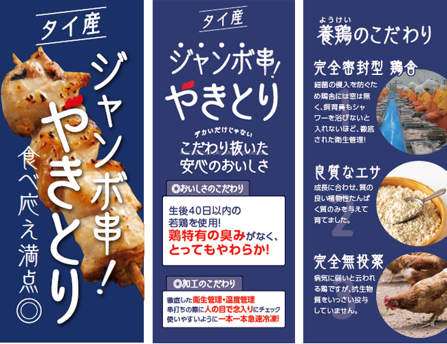 でかいだけじゃない!飼育・加工環境にこだわり抜いた一品食べ応え満点の“タイ産ジャンボ焼き鳥”販売開始!