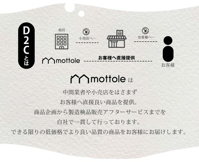 シンプルでありながら、従来の商品にはない機能性アイテムを多数取り揃える“mottole(モットル)”は、「その発想はなかった」「こんな商品が欲しかった」と驚かれる製品でお客様の暮らしをイロドル、ライフオンプロダクツ株式会社(本社:大阪府大阪市 代表取締役:池田 祐一)が運営するD2Cブランド。