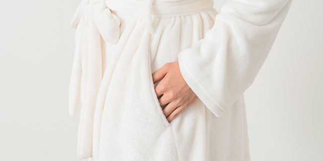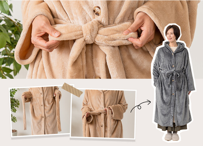 付属のガウンベルトを結べば、着丈アレンジも可能!
