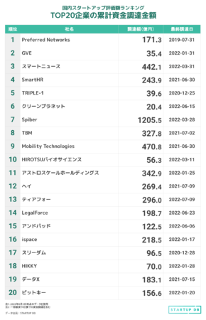 【STARTUP DB】調査結果 国内スタートアップ評価額ランキング最新版(2022年8月)