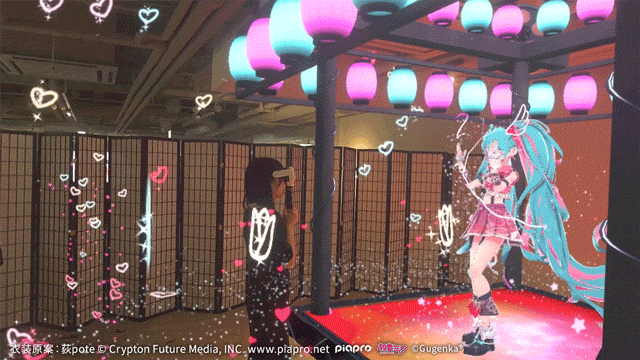 XRコンテンツに強みを持つGugenkaならではのイベントとして、目の前の現実空間との複合を楽しめるイマーシブルデジタルショーを実施。このショーでは、3Dゴーグルを通すと初音ミクのパフォーマンスを至近距離で楽しめる体験を提供いたしました。