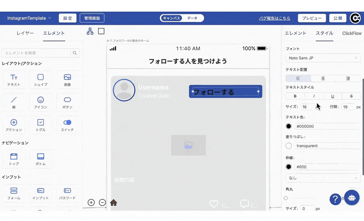 ノーコードツール「Click」とはプログラミングが不要で、iOS、Android、Webアプリを直感的に構築できる純国産ノーコードツールです。ドラッグ&ドロップの直感的な操作でアプリ開発が可能であり、外部サービスとのAPI連携やChatGPT連携も容易に行えます。