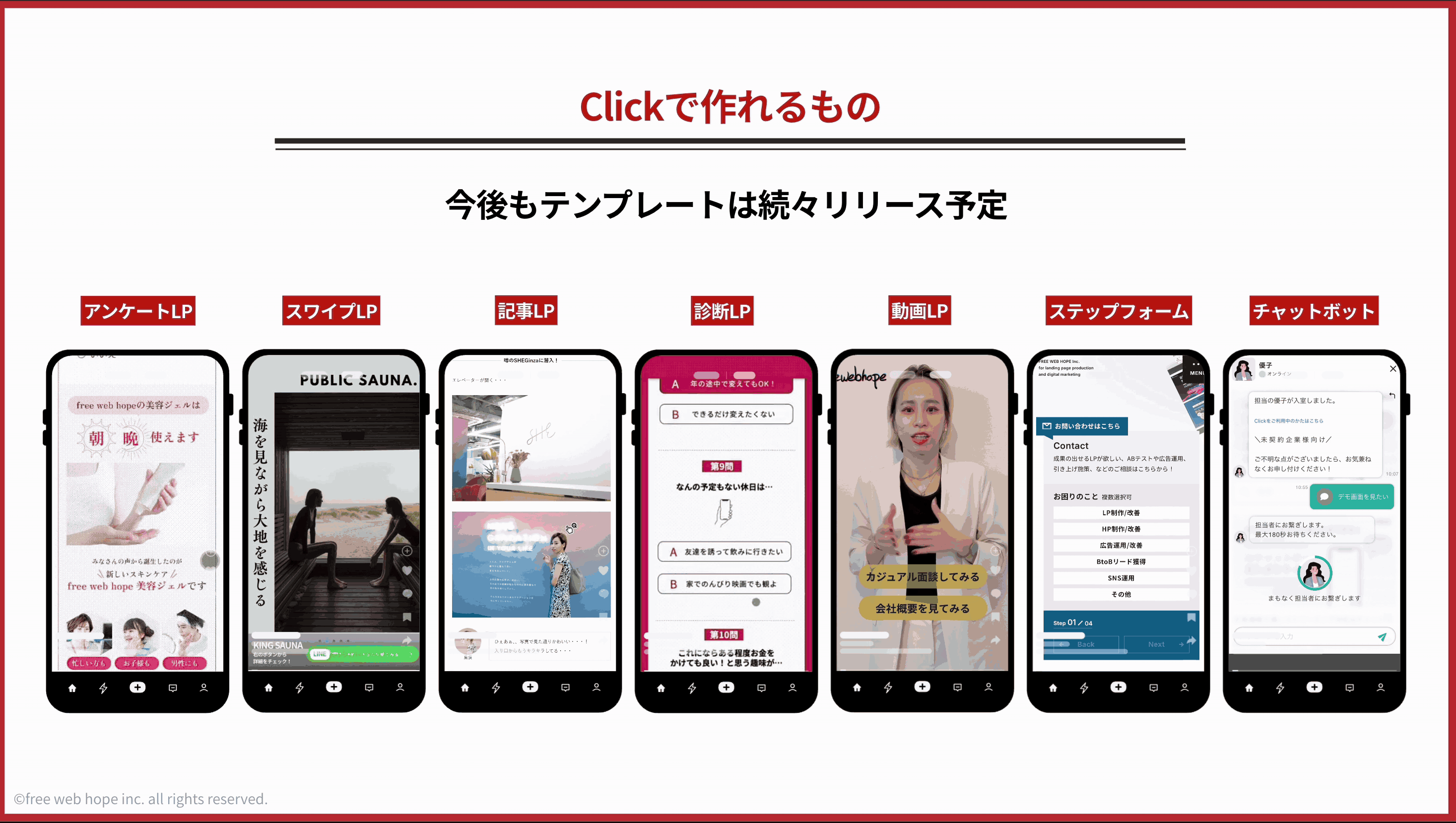 free web hope、月額19,600円で無制限にコンテンツ型LPが制作できるノーコードアプリ開発ツール 「Click」を提供開始