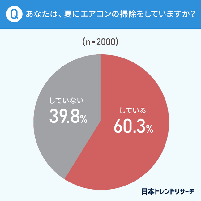 また、夏のエアコン掃除に関しては60.3%の方が「している」と回答しました。