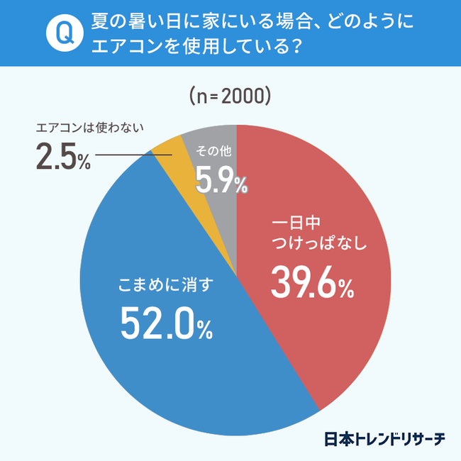 まずは、夏の暑い日に家にいる場合、どのようにエアコンを使用しているかについて聞きました。