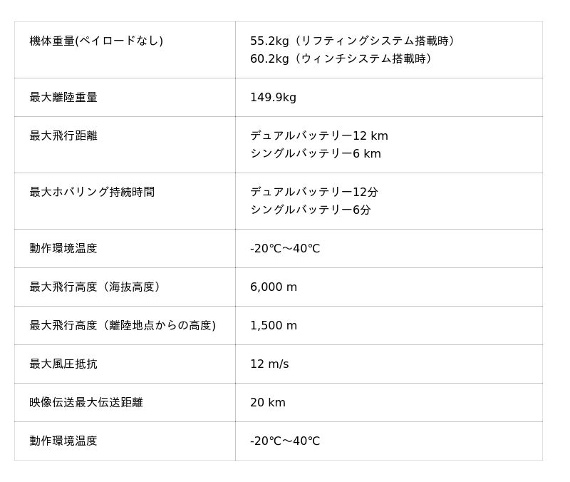 最大積載量80kg、実運用では約65kgの重量物輸送を実現