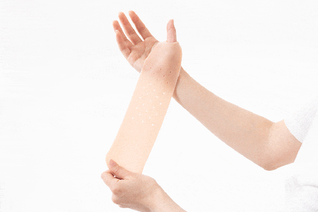 「巻くだけ簡単 手首ゲルサポーター」は、薄くて軽い優れた伸縮性のゲル素材を使用しています。少しでも手首への負担を減らせるように材料の選定をおこないました!