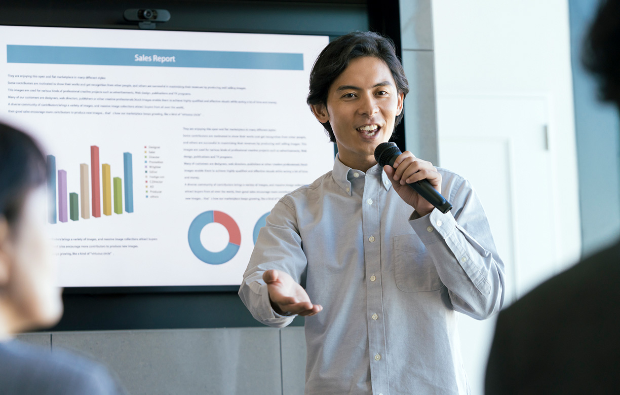ビジネスの現場では壁掛け設置が選ばれることが数多くあります。Smart TVは薄型の本体と壁掛け金具により、壁面から突き出しを極力なくした設置が可能です。壁に絵画を飾るかのようなたたずまいを実現します。