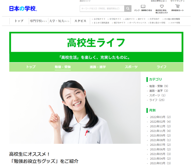 高校生ライフ「高校生にオススメ!「勉強お役立ちグッズ」をご紹介」:https://school.js88.com/koukousei/life/40