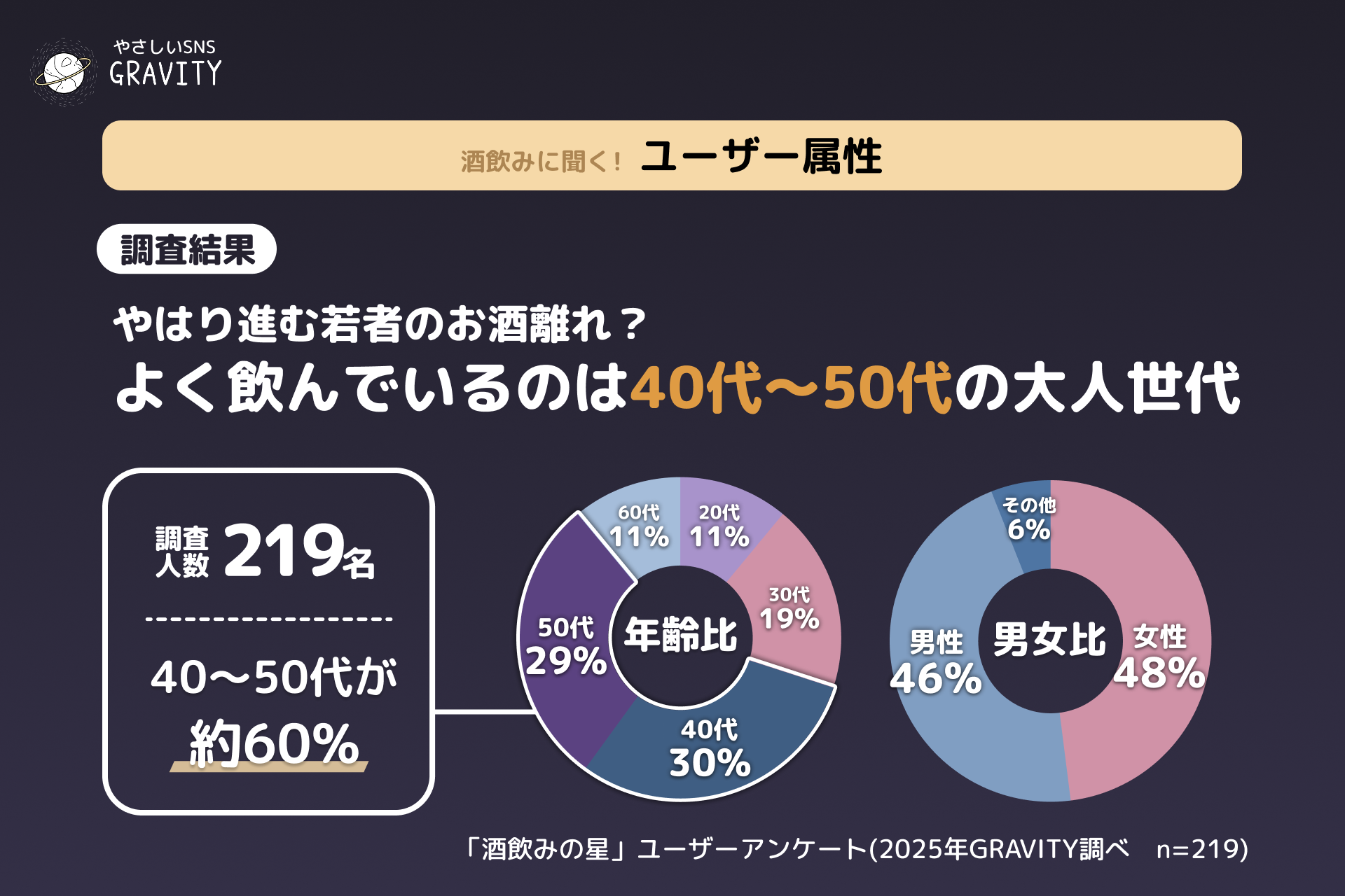 調査対象:アプリ「酒飲みの星」登録ユーザー 219名
