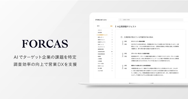 FORCAS、生成AIを活用し企業課題を特定する「AI企業課題サジェスト」を提供開始