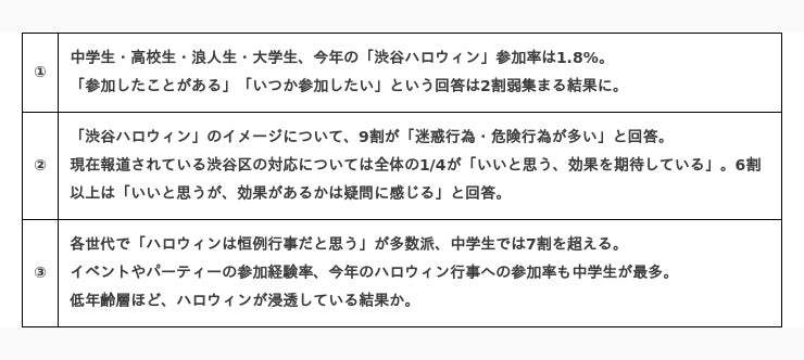 今後、定点的に観測することで、世の中におけるハロウィンの位置付けの変遷が分かってくるかもしれません。