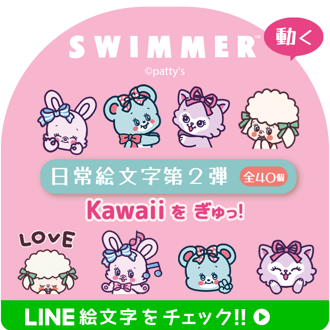 アイピーフォー株式会社(本社:東京都豊島区、代表取締役社長:小濱 剛)がライセンスを取り扱っている大人気雑貨ブランド「SWIMMER」は、LINEで使用可能な「動くLINE絵文字」を発売開始しました!