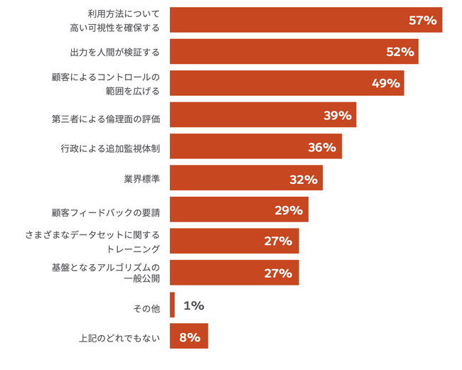 日本の顧客の43%は、AIの適用方法について高い可視化を保つことで信頼が高まると回答しています。