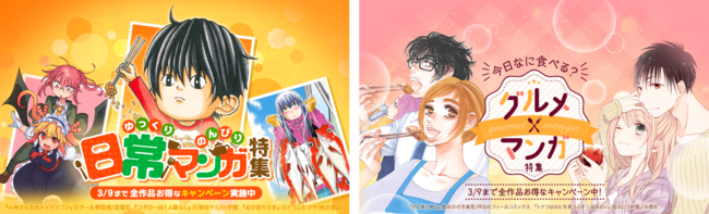「LINEマンガ」では、2月24日(金)から3月9日(木)まで、暦上は春となった今の季節にぴったりなほっこりマンガを集めた「日常マンガ特集」「グルメマンガ特集」を開催中です。