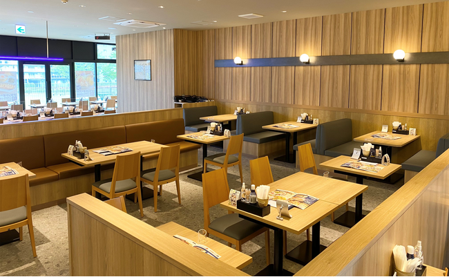 店舗は東武スカイツリーライン獨協大学前〈草加松原〉駅から徒歩12分の商業施設「トーブ イコート」2階にあり、県内最大級の広さ。お子様連れでもゆったりとくつろぎながらお食事が楽しめます。