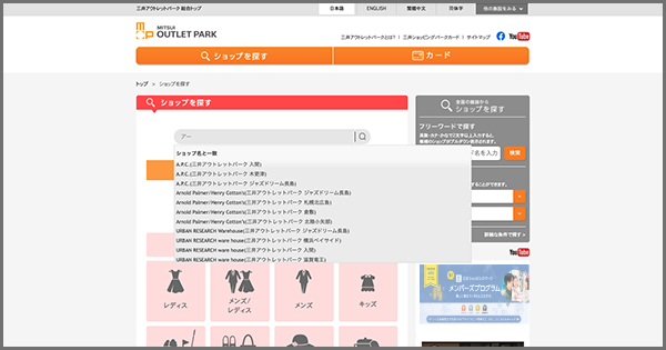三井不動産株式会社が展開する商業施設『三井ショッピングパーク ららぽーと』、『三井アウトレットパーク』の公式サイトにて、サイト内検索エンジン「ZETA SEARCH」が採用されました