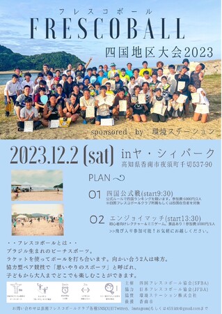 このたび、SFBAが主催する『フレスコボール四国地区大会2023』が、12月2日(土)に高知県香南市ヤ・シィパークで開催されます。第一回&第二回大会は、2022年から2023年にかけて香川県東かがわ市・山田海岸で開かれ、今回は第三回。四国におけるフレスコボールの輪は着実に広がり始め、今大会も多くの選手出場が見込まれます。