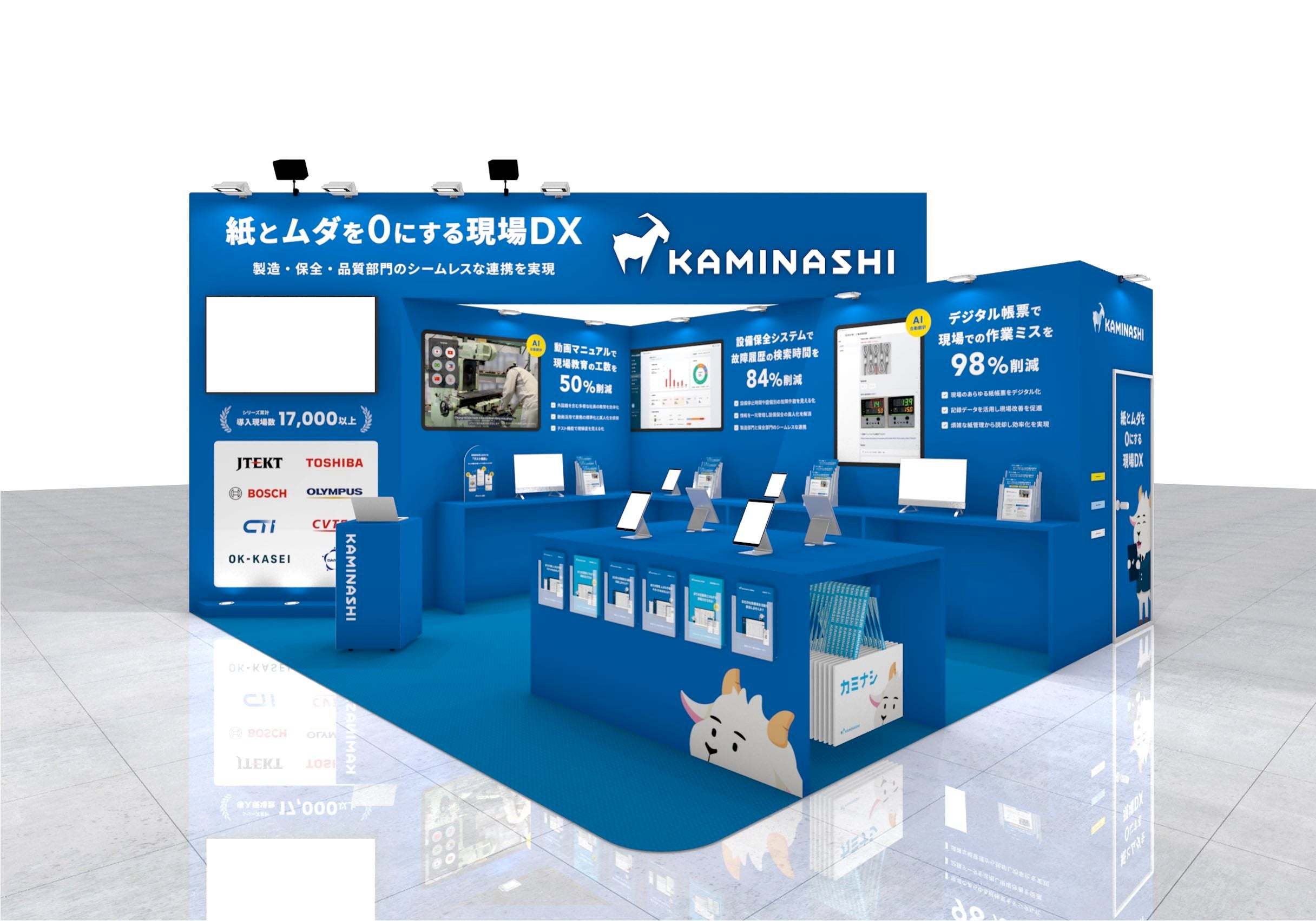 カミナシは、本展示会において現場DXプラットフォーム『カミナシ』を出展します。『カミナシ』シリーズ製品は、紙による管理や属人的な作業をデジタル化し、現場における「ムダ」と「手間」を削減することで、業務効率化と品質向上を支援するソリューションです。ブースでは実際のデモンストレーションを通じて直感的な操作性を体験いただけるほか、導入事例や効果についてもご紹介します。