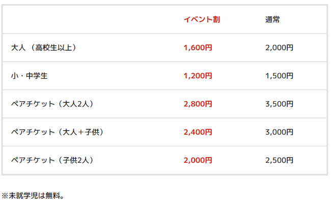 経済産業省のイベント需要喚起事業「イベント割」の実施を受け、期間限定でご利用いただける「イベント割チケット」を販売を開始しました。販売・利用期間が2022年12月16日〜2023年1月31日まで(日本政府による方針の変更等により終了日が前後する可能性がございます)。販売はオンラインのみで、ワクチン接種証明書の提示などの適用条件に適合した方のみ利用が可能になります。