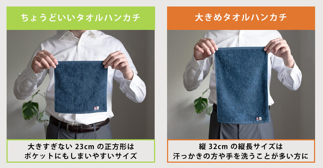 男性が使いやすいハンカチをイメージして作成したタオルハンカチ。