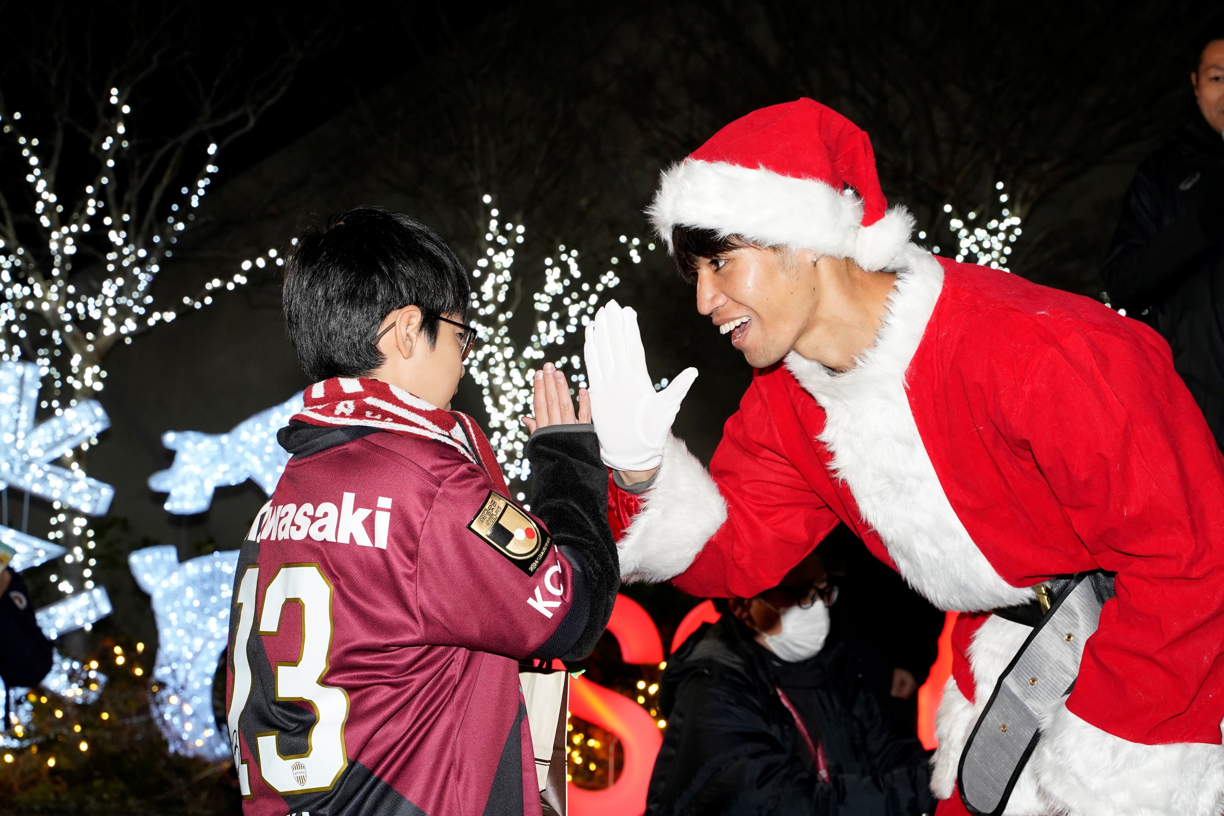 「寒い格好している子供たちもこんな時間までありがとう。みんなの力が僕たちの力になっているので、この声援を力に変えてサッカーしたいと思います。サッカーしている子もしていない子も、大樹が頑張っているから自分も頑張ろうと思ってもらえればなと思います。いい子にして、サンタさんからプレゼントもらおうね!」