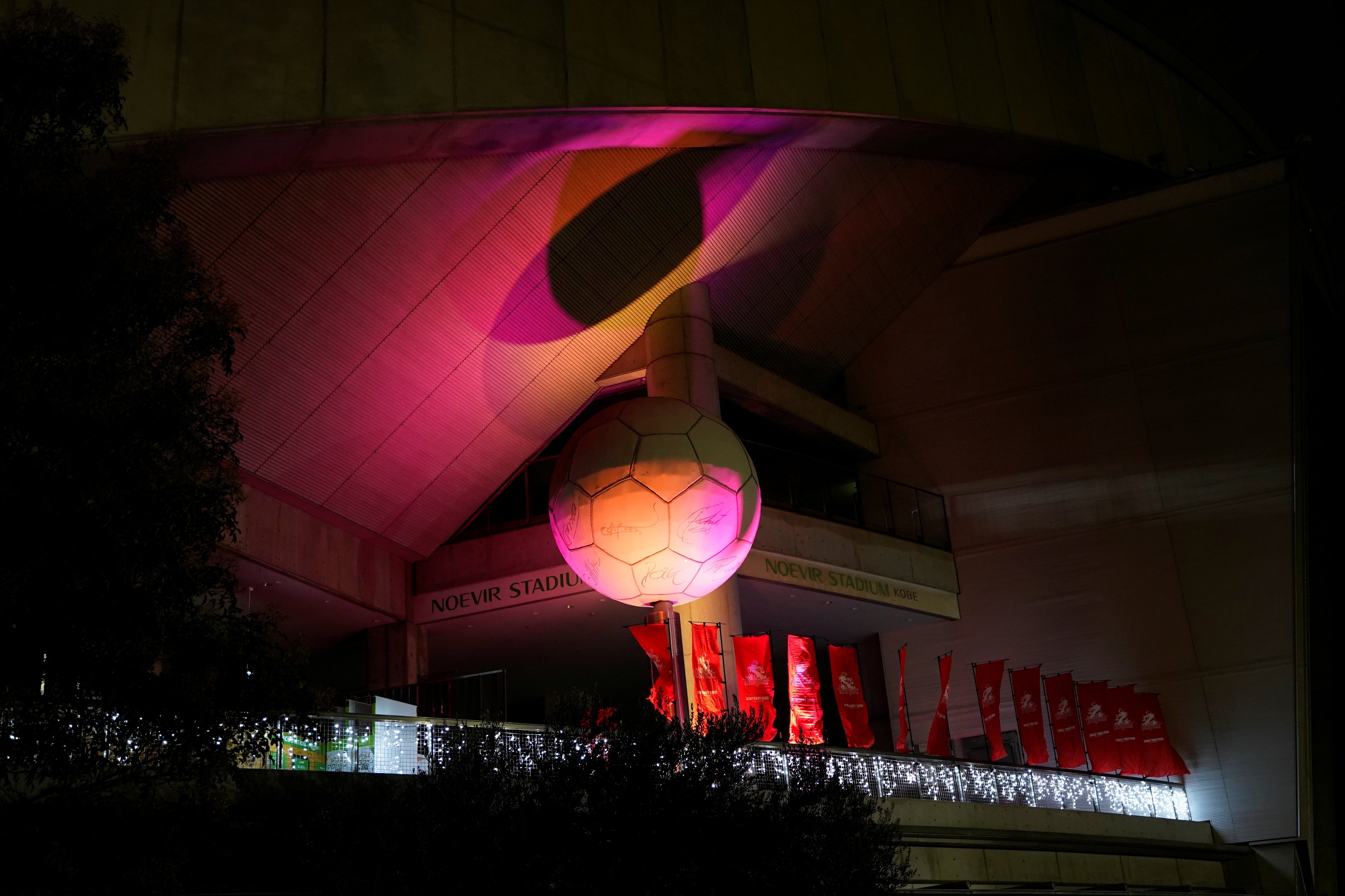 「通いなれた場所ですが、こうやって見ると大きいスタジアムで立派だなと思います。本当に綺麗で、神戸でも有数のイルミネーションになると思います」