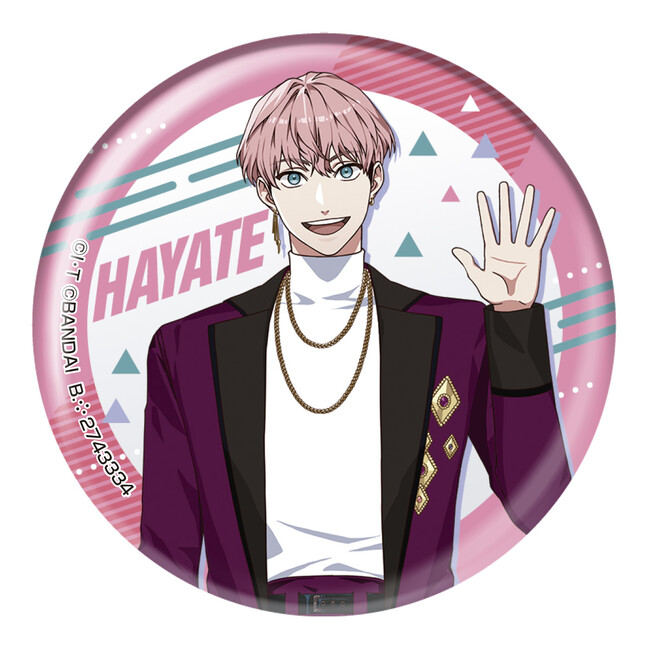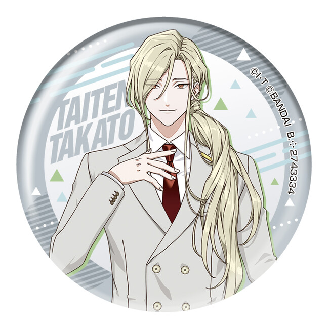缶バッジのサイズは直径約56mmのビッグサイズで、全種ホログラム加工の豪華仕様。アプリ内に登場するキャラクター5人をラインナップしています。