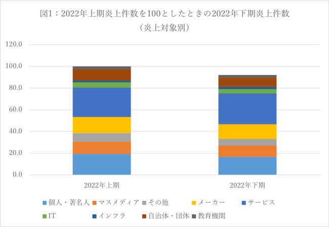 図2は、2022年の炎上件数を月次で炎上対象別に整理したものです。