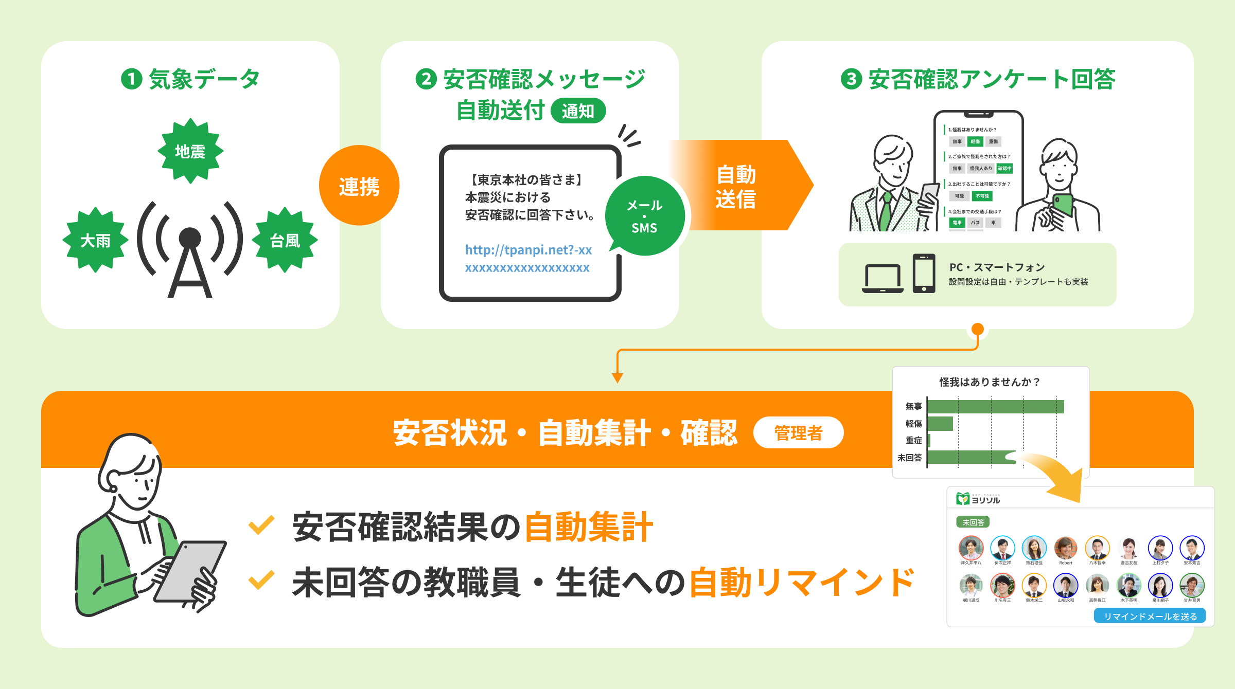 統合型スクールマネジメントシステム 「ヨリソル」災害発生時に生徒や教職員の安否を即時確認できる 「安否確認機能」 を提供開始