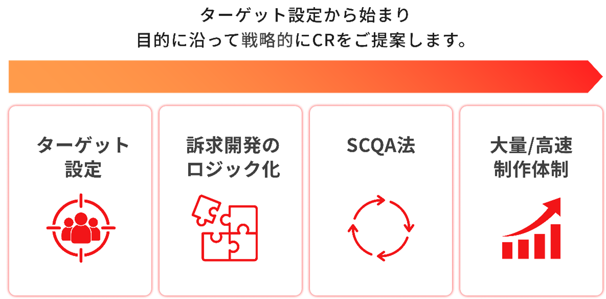 こうした課題を受け、当社はこれまで運用型広告およびダイレクトマーケティング領域で培ってきた知見をもとに、人に依存せず、再現性のあるクリエイティブPDCAを回すための定額制支援サービスを開発しました。
