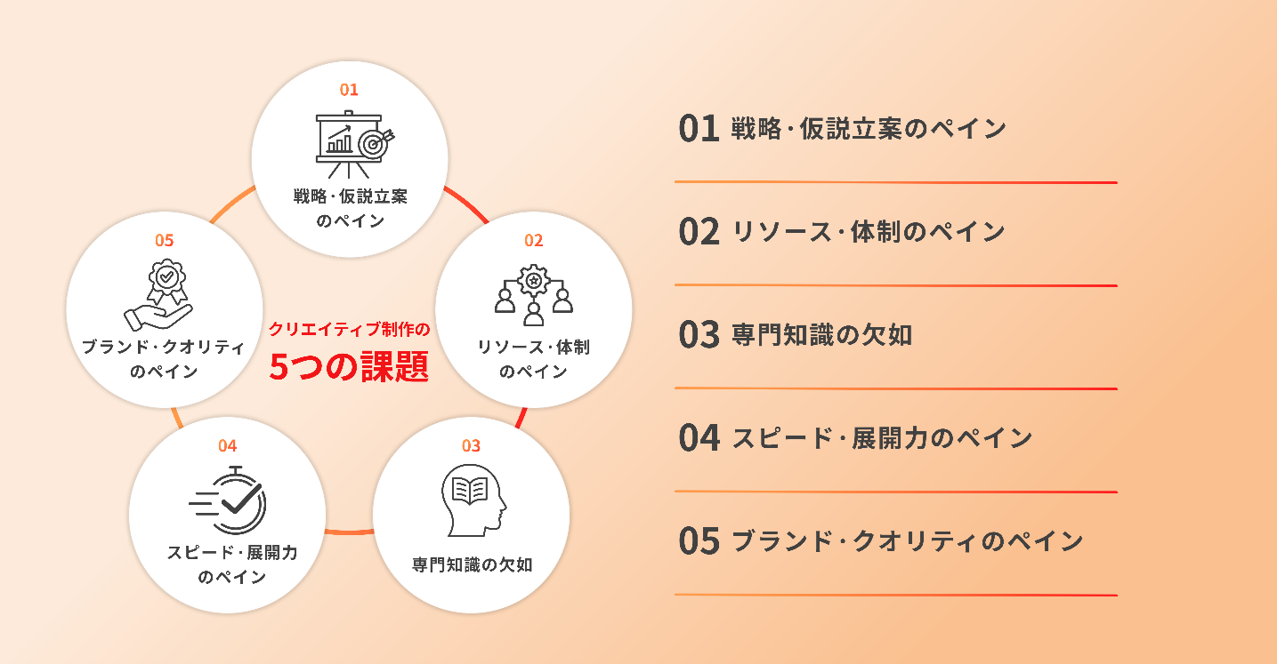 また、こうした課題に対し、社内制作の強化や外部への個別発注、業務委託・フリーランスの活用といった手法を取る企業も少なくありませんが、ノウハウが蓄積されにくく、単発対応に留まりやすいなど、継続的なクリエイティブPDCAを回すうえでの限界が顕在化しやすい側面もあります。その結果、検証量や改善スピードが事業成長に追いつかないケースも多く見られます。