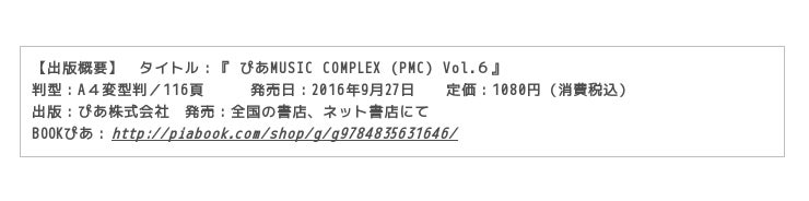 本日9月27日、ぴあより『ぴあMUSIC COMPLEX(PMC) Vol.6』を発売いたしました。今号は「音楽の言葉」を特集。音楽における言葉の役割、メッセージ、歌詞……、“自分の言葉”を発信している音楽家をはじめ、言葉のプロが登場します。