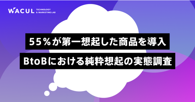 データ分析ツール「AIアナリスト」で、マーケティングDXを自動化する株式会社WACUL(本社:東京都千代田区、代表取締役社長:大淵 亮平、証券コード:4173、読み:ワカル、以下当社)は、BtoBの購買行動における純粋想起の実態を調査し、レポートを公開しましたのでぜひご覧ください。