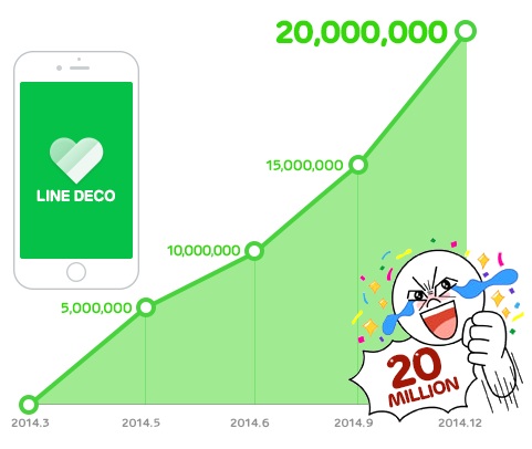 LINE株式会社(本社:東京都渋谷区、代表取締役社長:森川 亮)は、同社が運営する無料通話・無料メールスマートフォンアプリ「LINE(ライン)」のスマートフォン着せ替えアプリ「LINE DECO」(iPhone・Android対応/無料)が、2014年12月末時点でダウンロード数が世界累計2,000万件を突破いたしましたので、お知らせいたします。