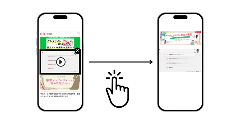 ポップアップやバナー内に動画を表示させ、ページ滞在中に再生できる新機能です。