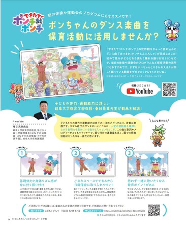 また、こどもりびんぐでは、昨年より先生向けのオンラインセミナーも実施。トライアル号では「ジェンダーについて考えよう」と題してオンラインセミナーの告知募集も行い、多くの園にご参加いただきました。その他、保育活動に公式キャラクター「ポンちゃん」のダンス動画を提案するなど、今後も幼稚園・保育園の先生に役立つ情報・コンテンツを掲載していく予定です。