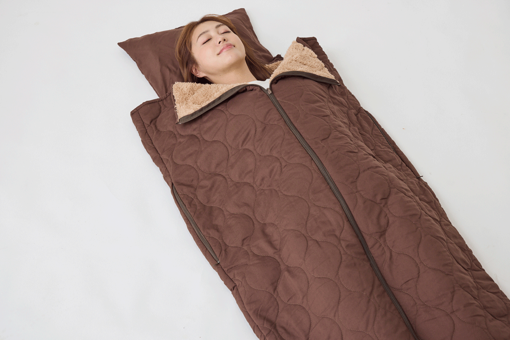 寝袋⇔ブランケット⇔クッションへマルチに使える!手足が出せるファスナー付きの多機能便利な寝袋♪