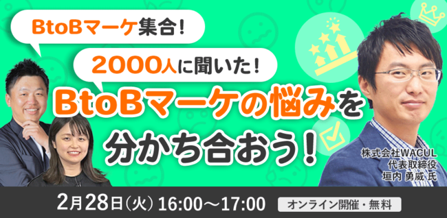 【2/28(火)Webセミナー】「BtoBマーケ集合!2000人に聞いた!BtoBマーケの悩みを分かち合おう!」を開催