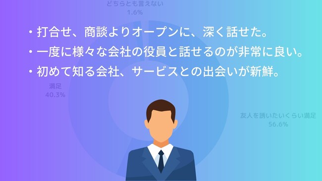 「話題や価値観をより共有できる経営者と出会い、より深い意見の交換ができたらいい」