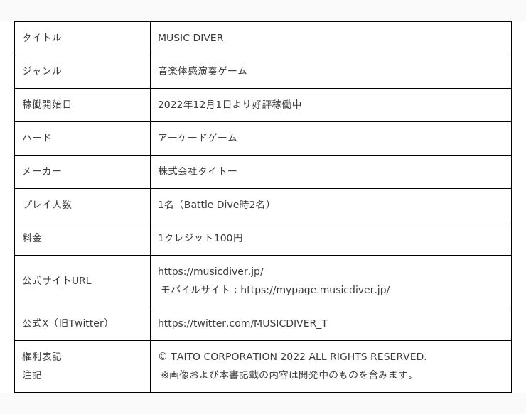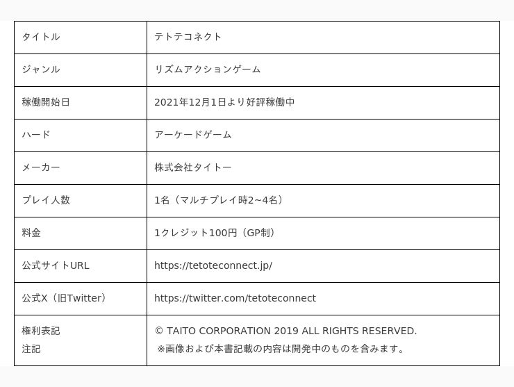 ※TAITO、TAITOロゴ、NESiCA、「MUSIC DIVER」および「テトテコネクト」ロゴは、日本およびその他の国における株式会社タイトーの商標または登録商標です。