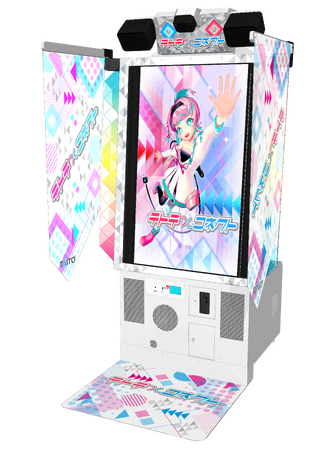 新開発の大型全面タッチパネルモニターを使って楽しむアミューズメント施設向け音楽ゲームです。アニソン、ポップス、東方Projectアレンジ、バーチャルなど幅広いジャンルから多彩な楽曲で爽快感あふれるリズムアクションが楽しめます。またプレイするほど絆が深まるパートナーとのコミュニケーションも魅力です。