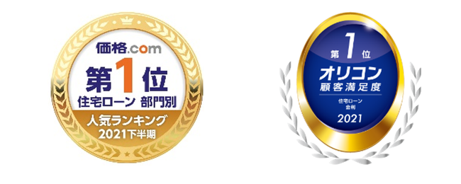 これらのサービス内容は、お借入れいただいた約95%のお客さま(※2)にご満足いただいており、「住宅ローン人気ランキング」で価格.com住宅ローン人気ランキング第1位(※3)、2021年 オリコン顧客満足度(R)調査 住宅ローン 評価項目「金利」で第1位を獲得しています。